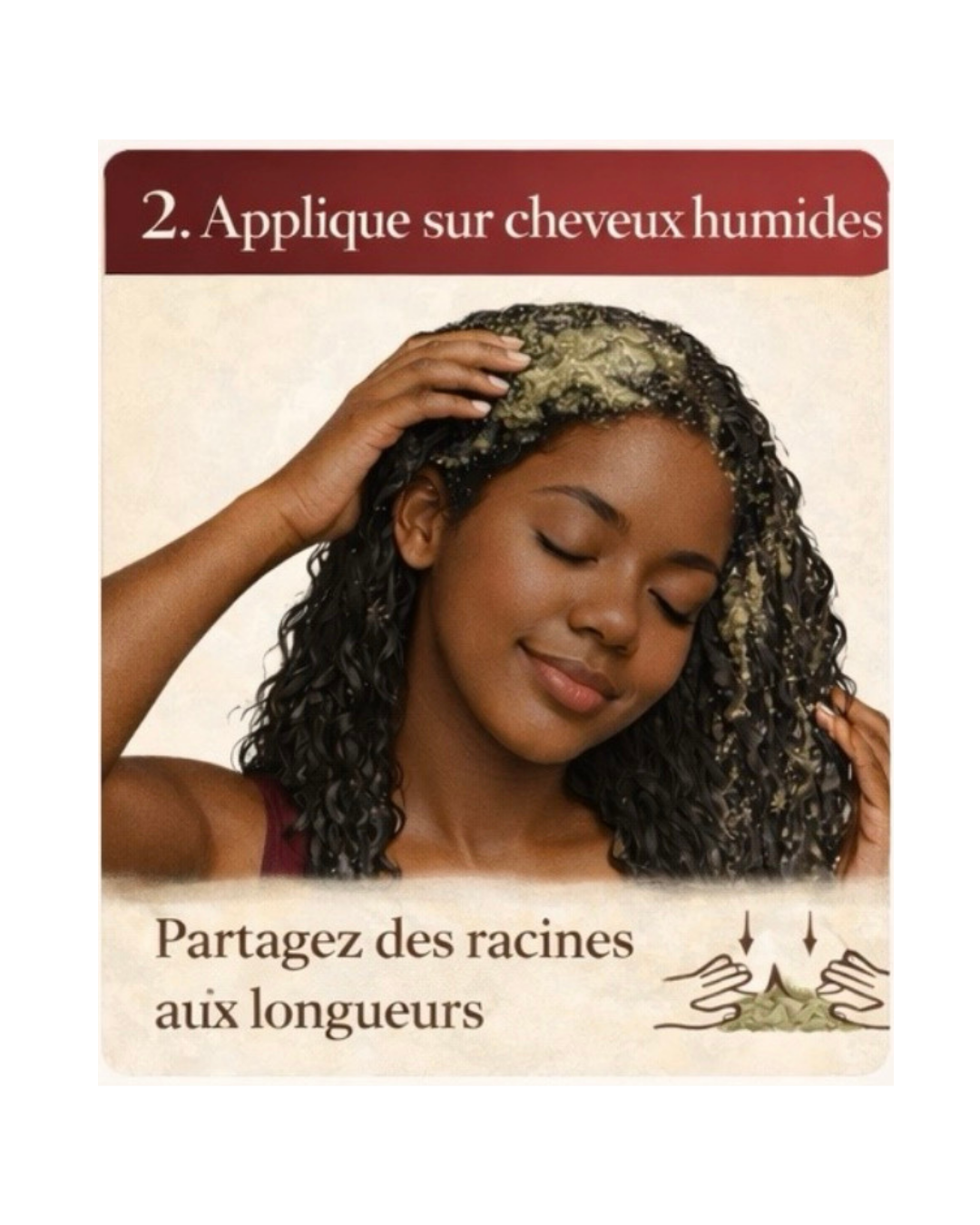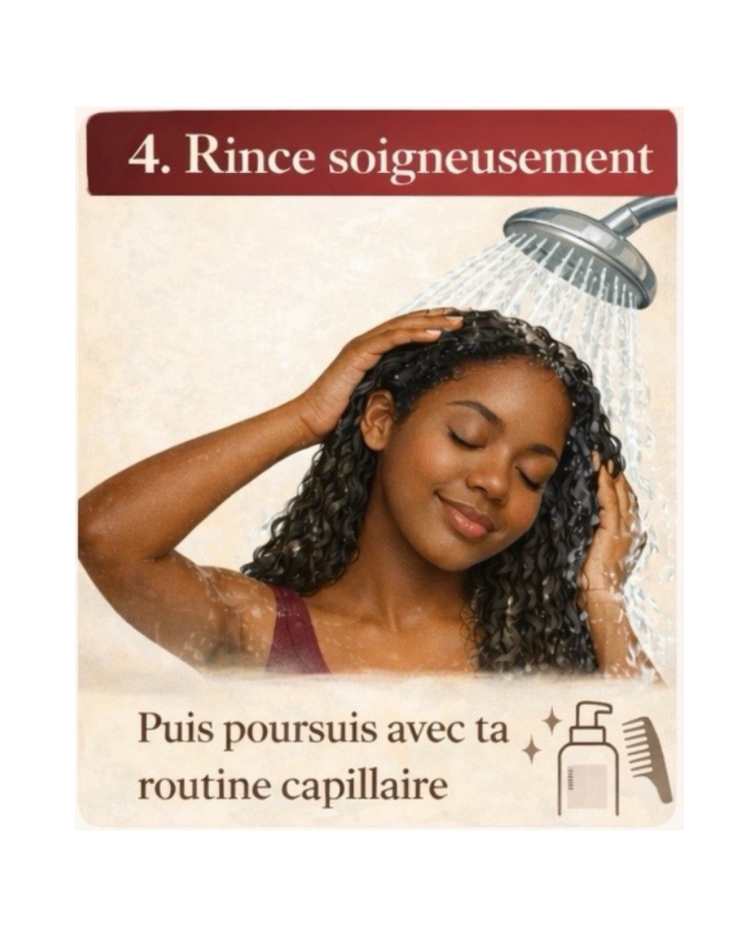 Notre huile est adaptée à tous les types de cheveux, du 1A au 4C. Elle nourrit, fortifie et stimule la pousse, en particulier pour les cheveux texturés, secs ou cassants.