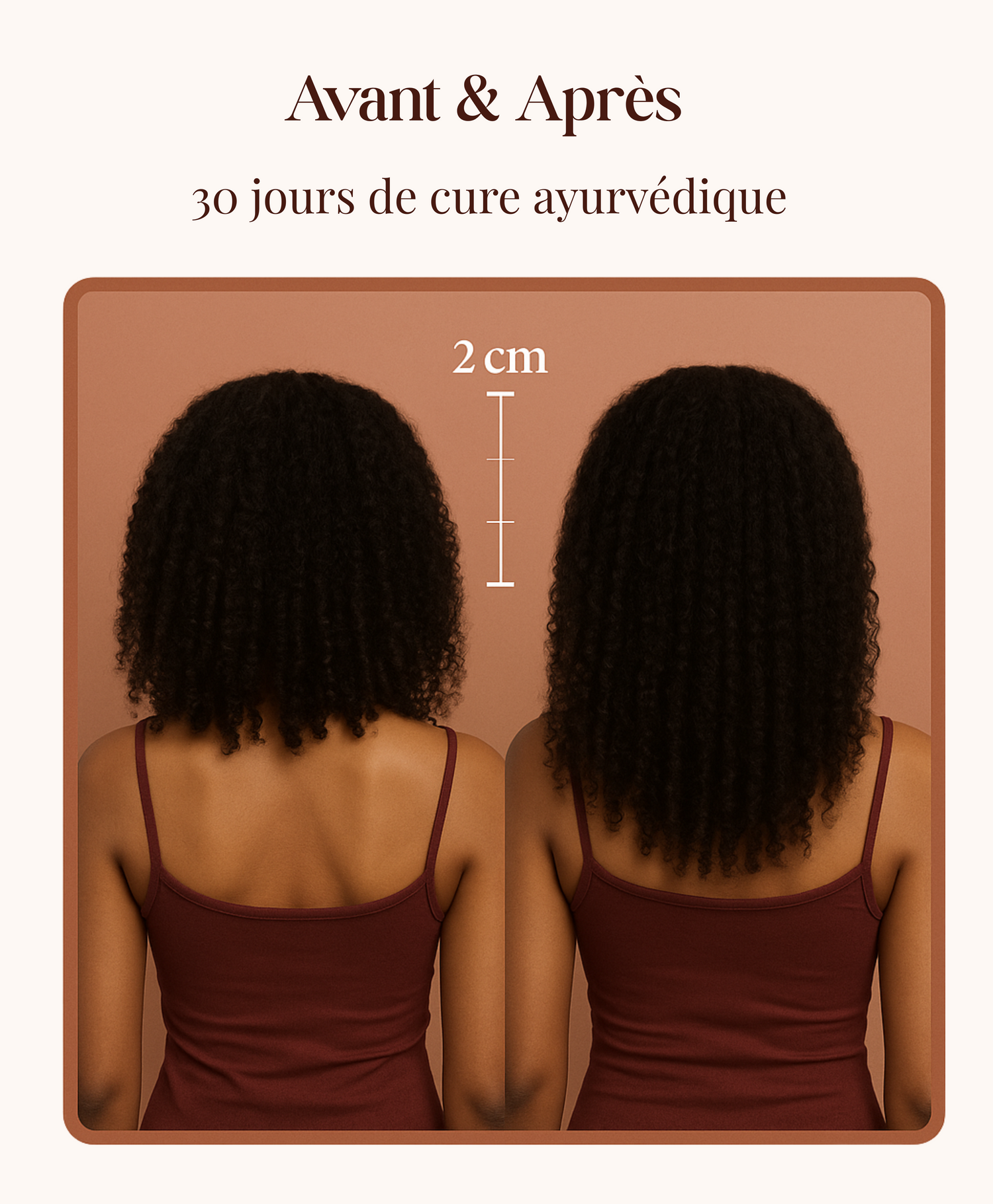 Une huile infusée & macérée aux plantes ayurvédiques qui active la pousse, réduit la casse et réveille la brillance en 30 jours