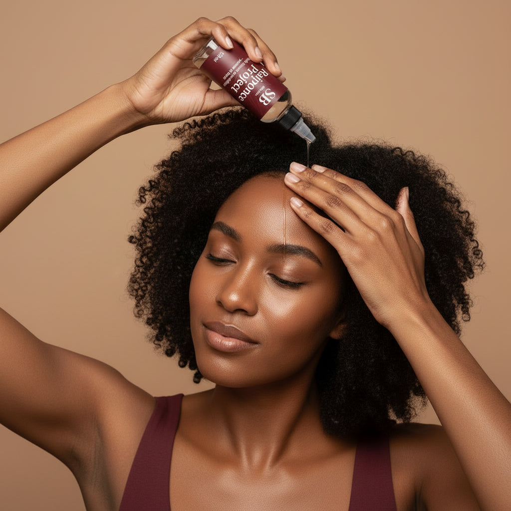 Notre huile est adaptée à tous les types de cheveux, du 1A au 4C. Elle nourrit, fortifie et stimule la pousse, en particulier pour les cheveux texturés, secs ou cassants.